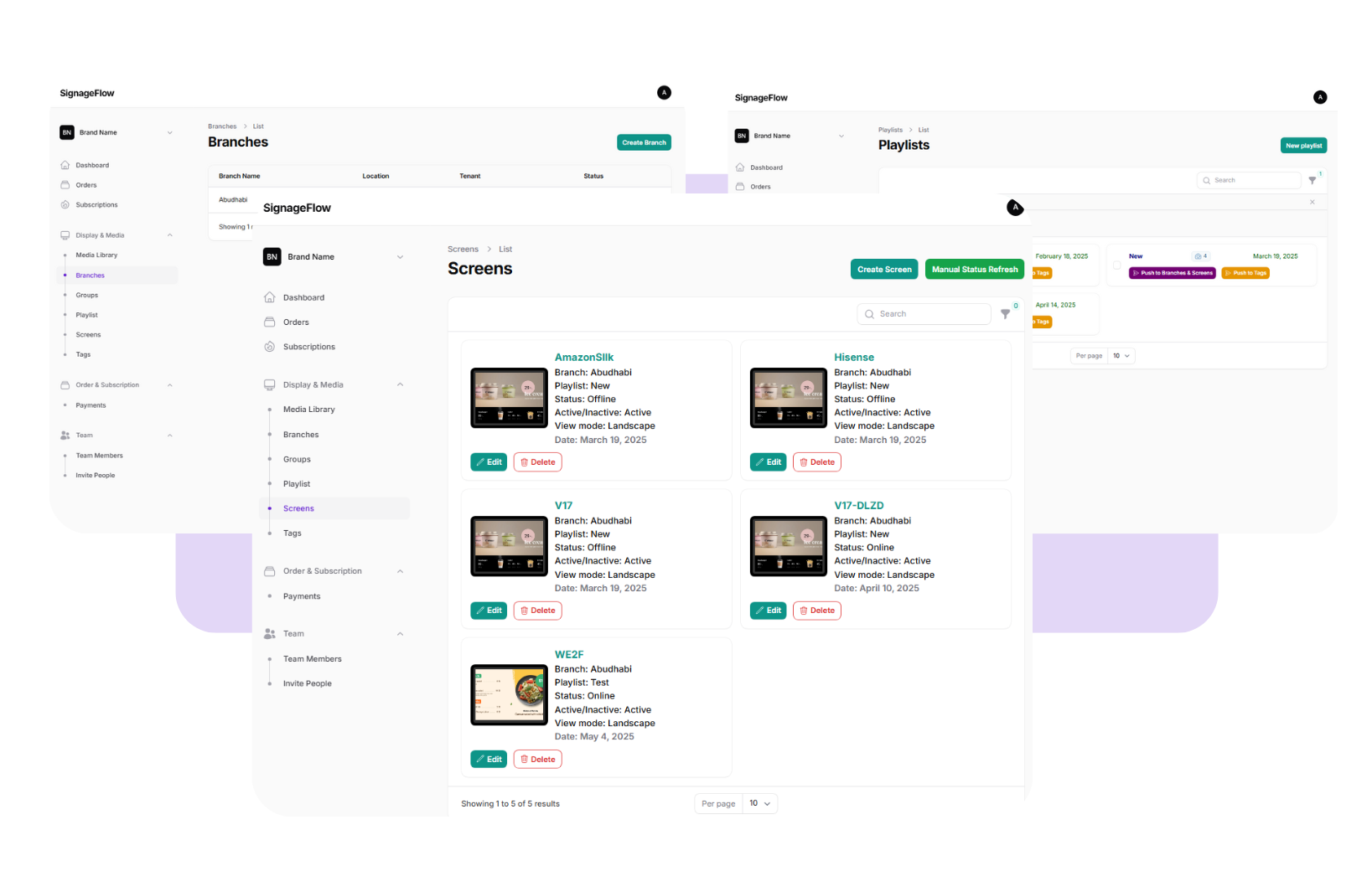 A powerful, easy-to-use tool to manage digital screens across multiple branches and outlets from a single dashboard. Create playlists, push content, and schedule updates effortlessly – all with just a few clicks.